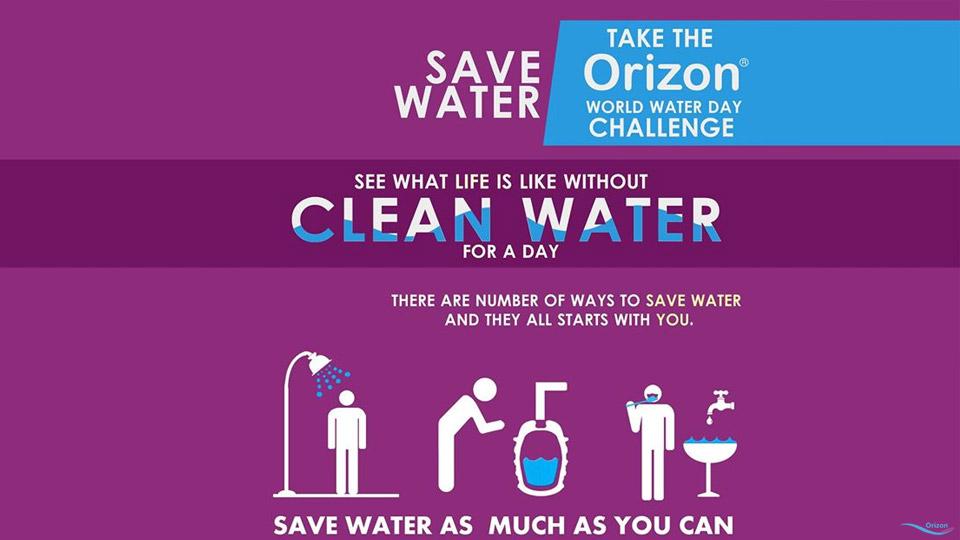Orizon Celebrating WORLD WATER DAY. We take initiative to SAVE WATER. Lets take challenge for good cause to Save water on the occasion of UN WORLD WATER DAY 2015.